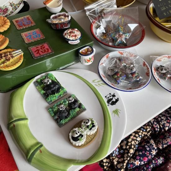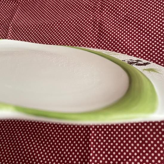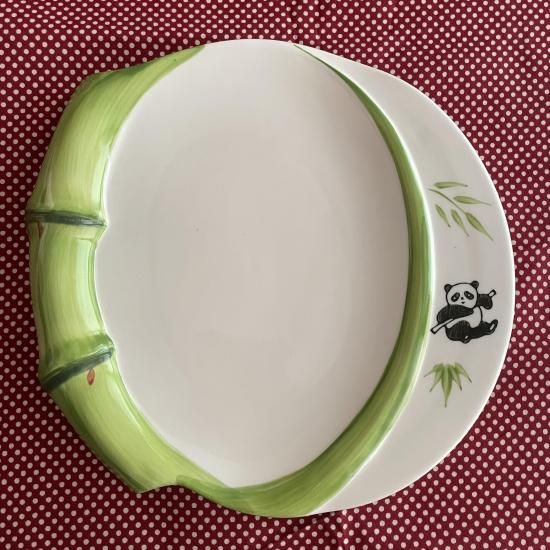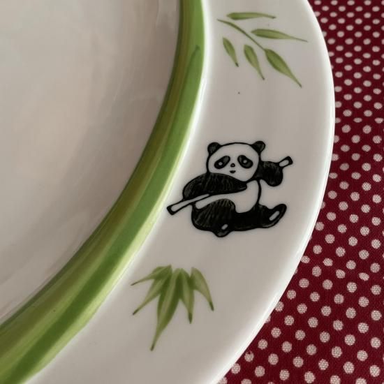 +++++ product information +++++パンダイラストがかわいいプレートです。近年のものですが今は作られていない食器屋のデッドストック。白い部分はほぼ平らなので何をのせても映えそうです。