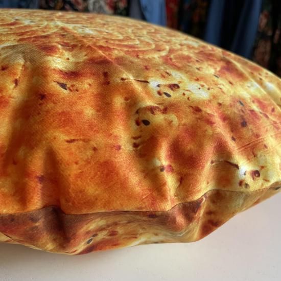 ウイグルの馕(ナン)のかたちのクッションです。少し起毛で手触りがよいふわふわクッション。