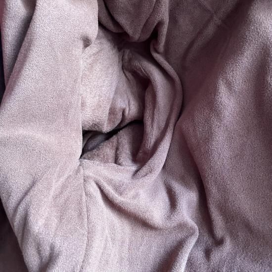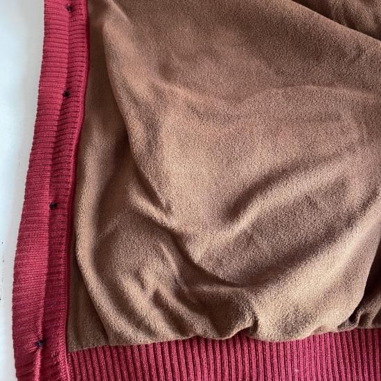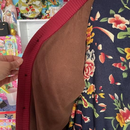 男女兼用でボタン右前です。裏地がフリースのような素材でアウターっぽくも着られます。裏が厚いので着るともこっとした感じになります。ポケットはミシンで縫われていてダミーのようです。素材ポリエステル。手洗い可。