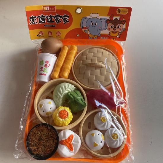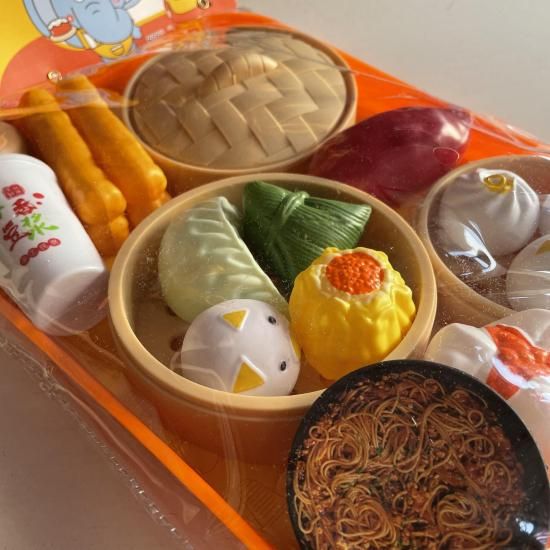中国の特色ある朝ごはんのおままごとセット。プラスチックのトレイは日常でも使えるサイズ感です。